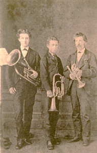 The Baileys continue to be involved with the band for a number of years. A photograph from the early 1870s (shown above) provided by a descendant of the Bailey family shows three brothers posing with their instruments, Alfred Bailey (euphonium), William Havelock Bailey (tenor horn) and George Byron Bailey (cornet).